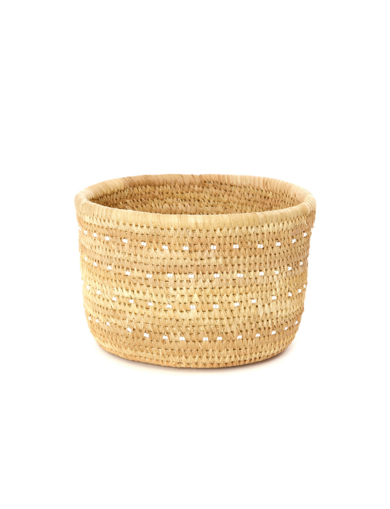 White Beaded Basket